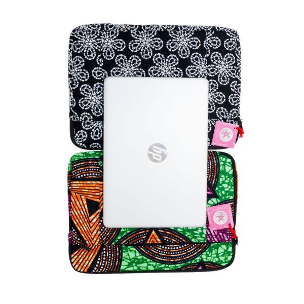Protective and stylish 15-inch laptop bags available in Ankara fabric or premium leather.